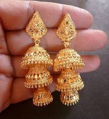 Gold Jhumka Design. 22k gold plated 3 steps indian bridal party jhumka jhumki earrings set jhumki earrings gold jhumka earrings indian bridal party